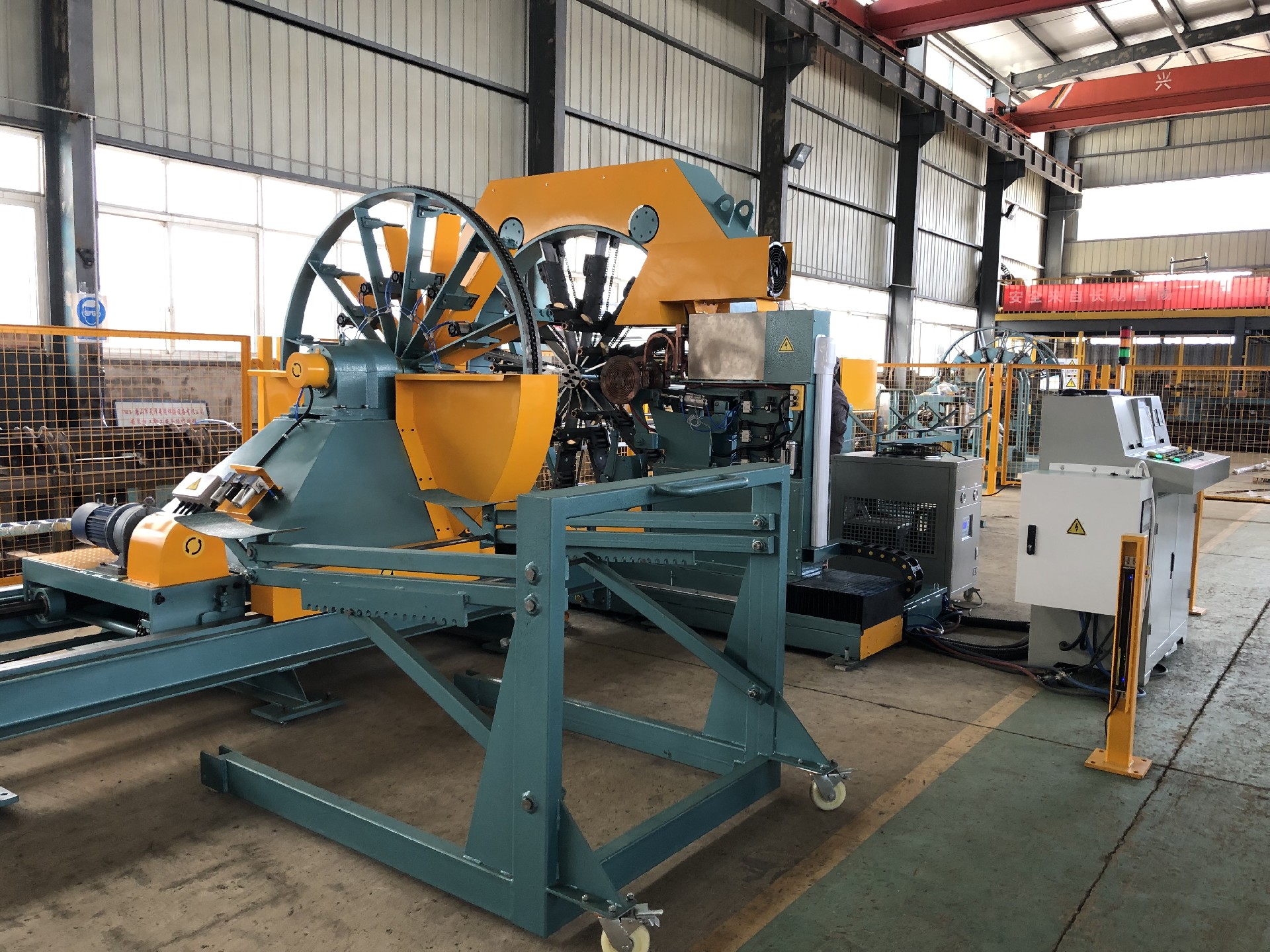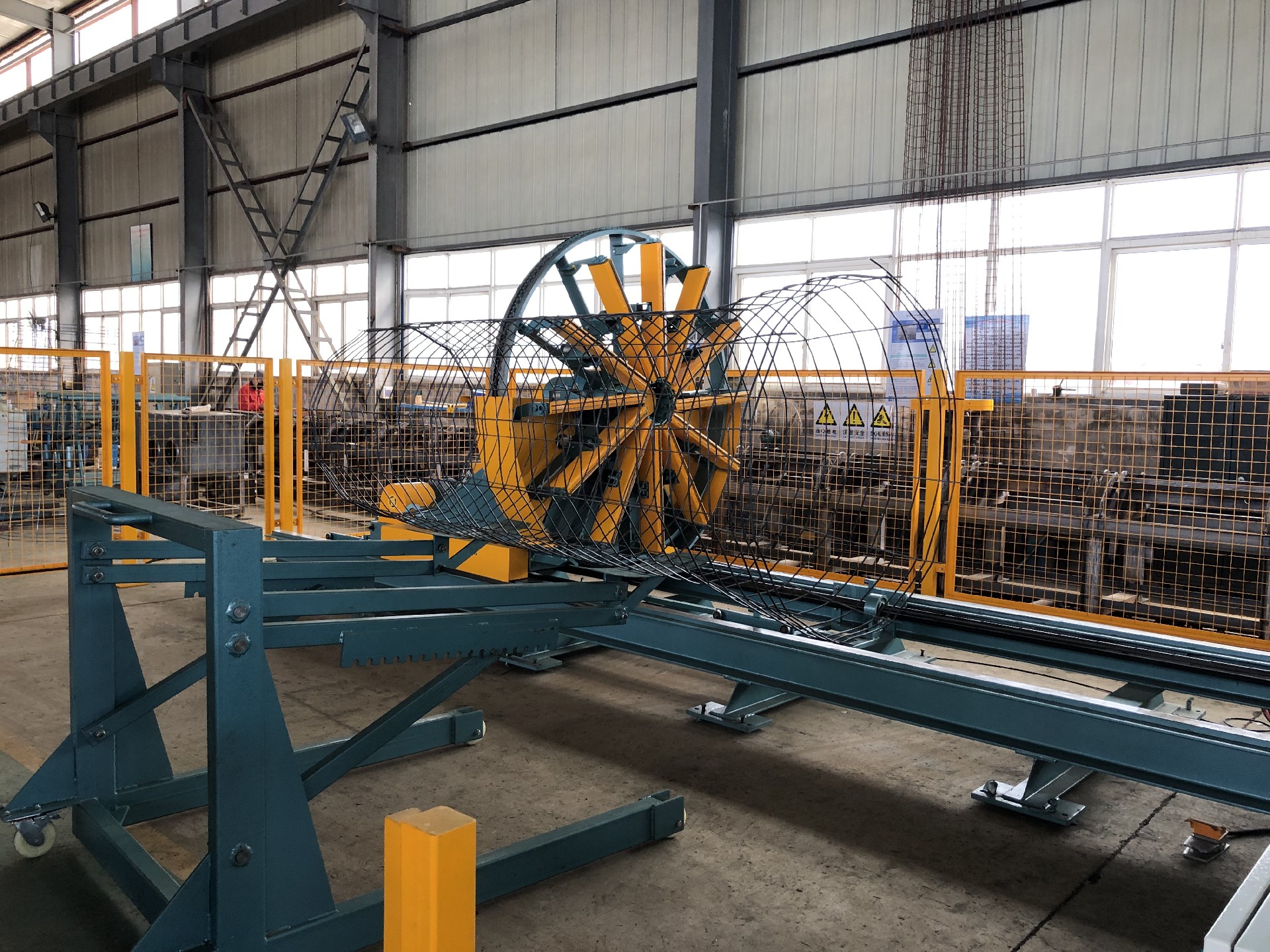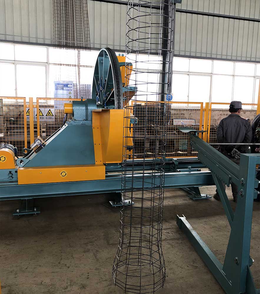 該機型為出口型的牽拉式排水管鋼筋骨架滾焊機,可生產(chǎn)Φ300-Φ1200mm鋼筋籠,其主要特點是焊接牢固,焊接速度快,鋼筋不扭曲等。